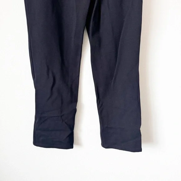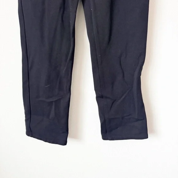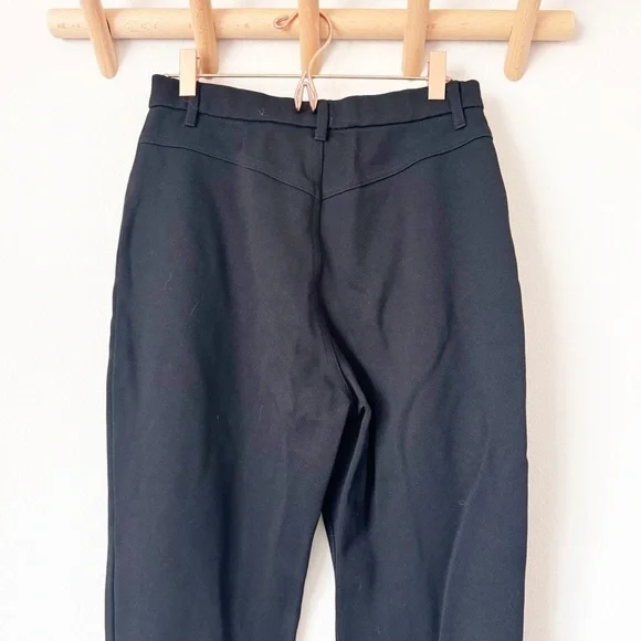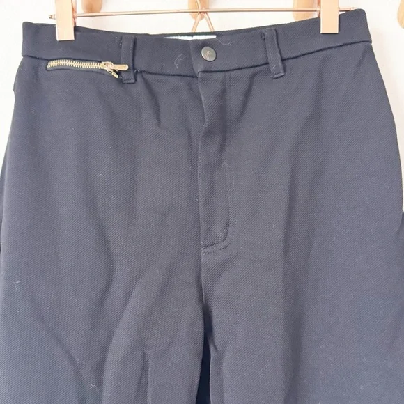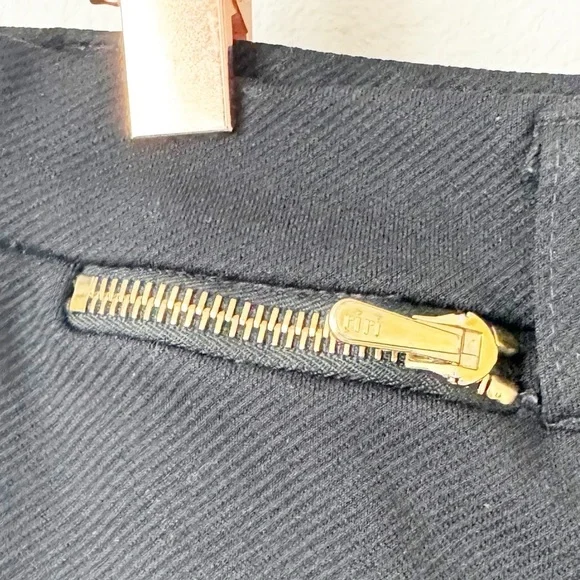 Straight leg black pants with stretch. Gold zippered pocket. In good condition with no visible flaws. High rise , ankle length Waist | 13” across Rise | 12”Inseam | 27”