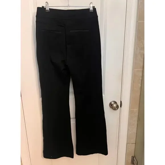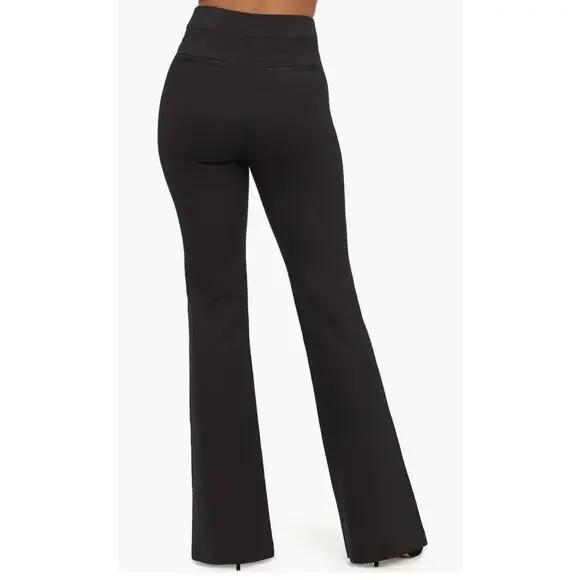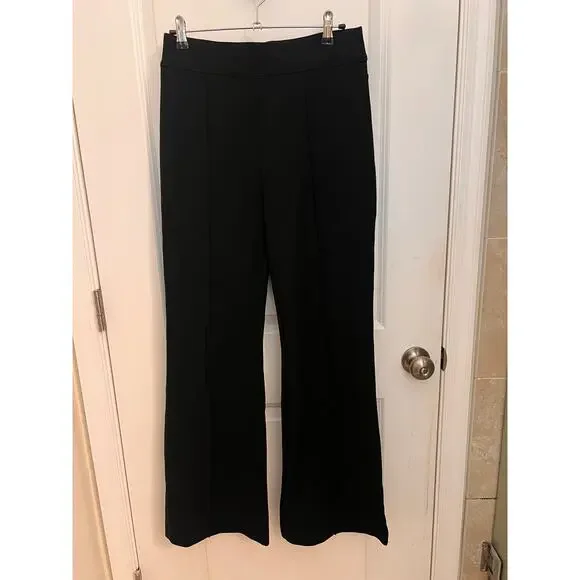 SPANX smooth Perfect Fit Ponte Flare Pants M Black Pull On Stretchy Shaping BohoSmooth-fitting ponte fabric ensures the sleek look—front and back—of these pants with leg-elongating pintucks highlighting the fun, flared legs.Size: MColor: Classic BlackPull-on styleFour-way-stretch fabric offers maximum stretch for wide range of motion and all-day comfortThe Slim is Built In™—hidden Gut Check™ shaping targets the tummy68% rayon, 28% nylon, 4% elastaneMachine wash, line dryWaist: 29"Rise: 12"Inseam: 31"Leg Opening: 22:Machine Wash ColdNew without tagsMSRP $148“Excellent Preowned condition (see pictures for details)”quiet luxury, high waisted, High Rise, Preppy, Office siren, dark academia, old money, minimalist, bohemian, career, goth, shaping, stretchy, preppy, corpcore, party