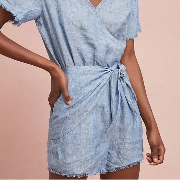 Sanctuary for Anthropologie - Montana Linen Tie Front Romper - Large - EUC