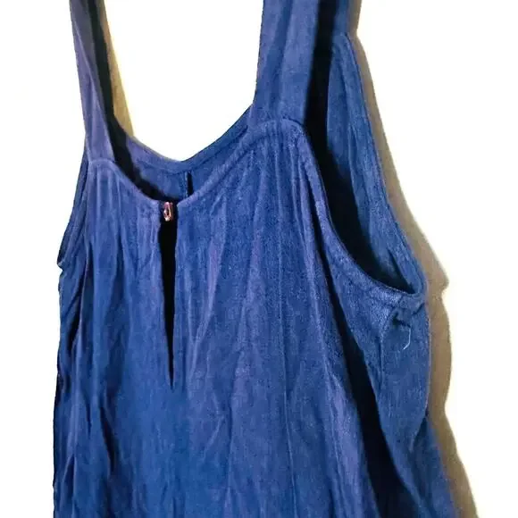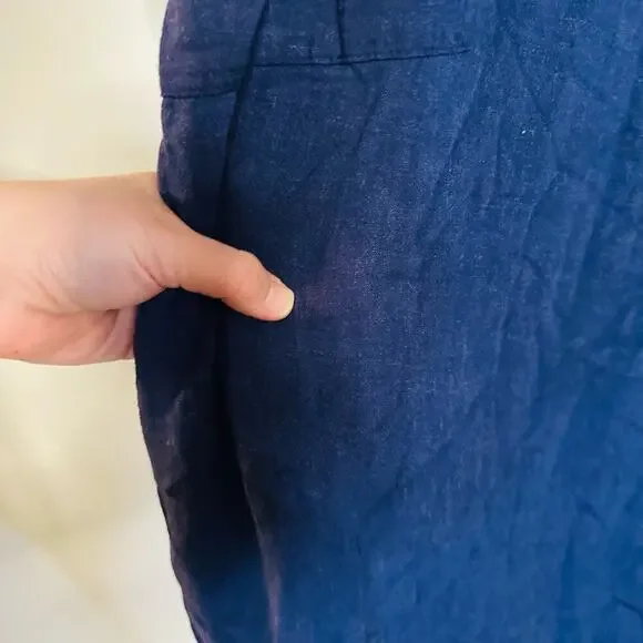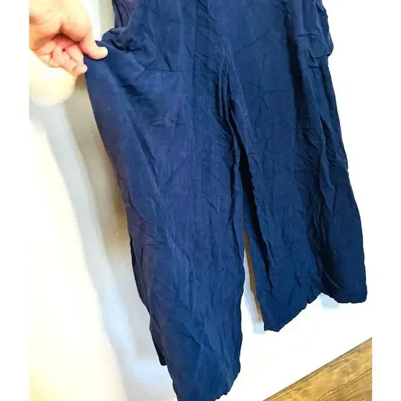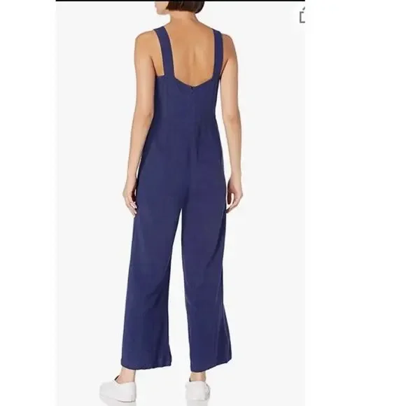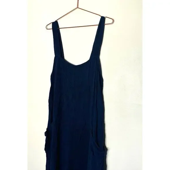 Rachel Pally Dark Blue Linen Alda Square Neck Wide Leg Flare Jumpsuit Size M