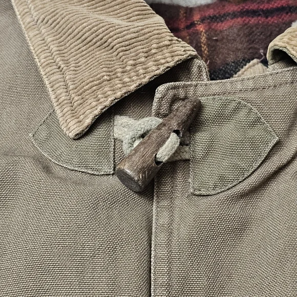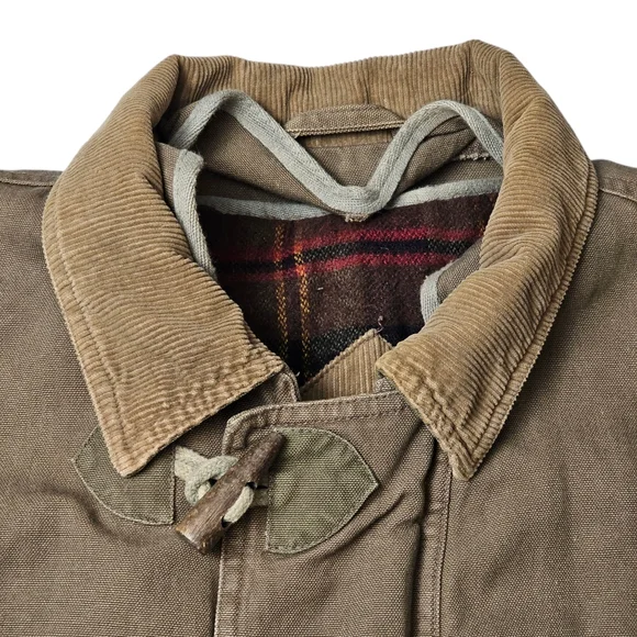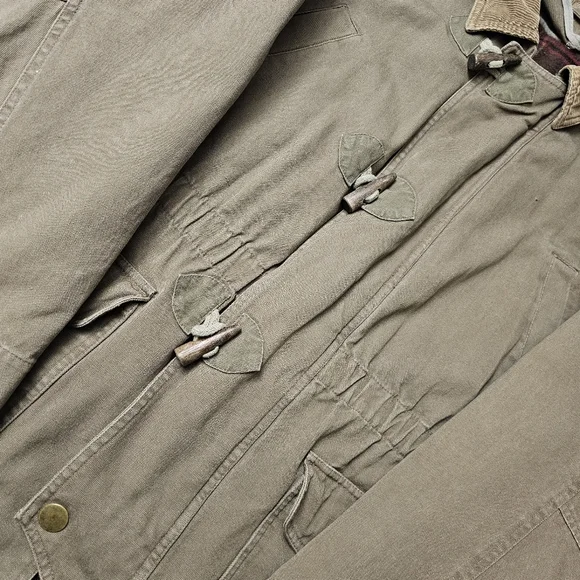 Adolfo Toggle Button Barn Coat Mens Large Corduroy Trim Collar Removeable Liner. Please see pictures for condition and wear. A few small spots and wear to the liner. I didnt notice any major issues. Please see pictures for flat lay hand measurements as well as they are almost always more reliable than tag sizes. All pictures are of the item you will receive and were taken by me.
