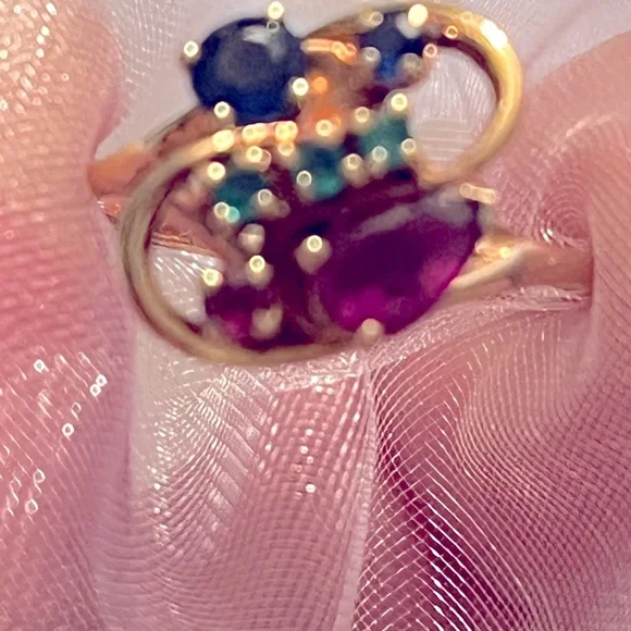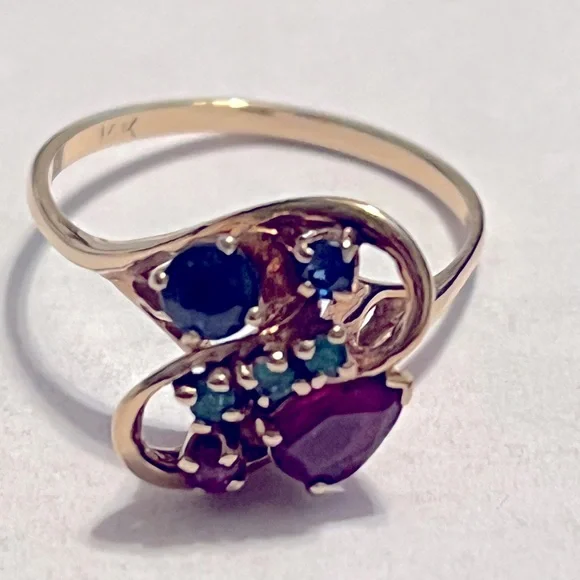 Custom made 14kt ring with real rubies, sapphires, and emeralds.