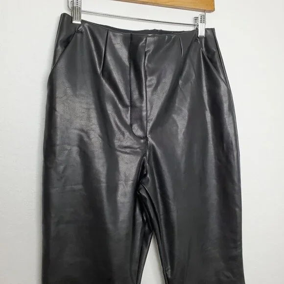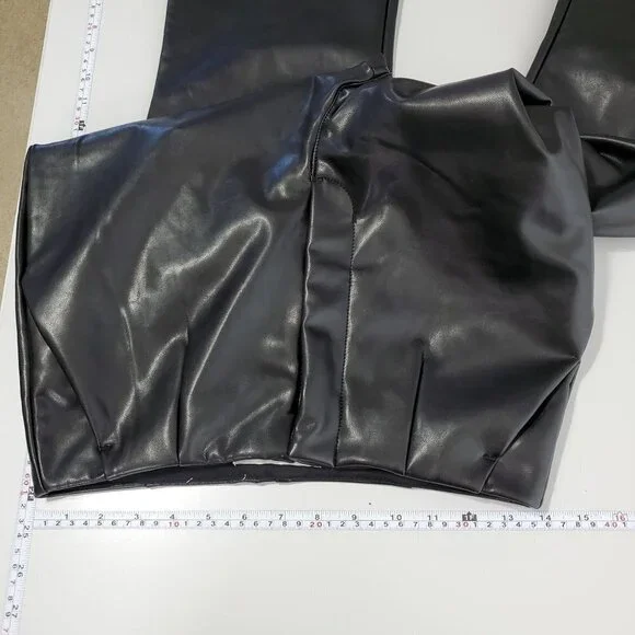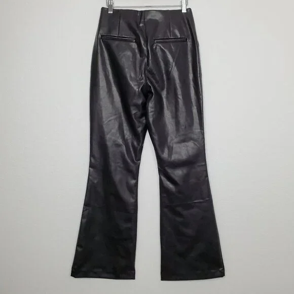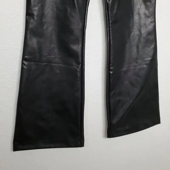 Abercrombie & Fitch Womens Curve Love Vegan Leather Pants Size 28 Flare Black