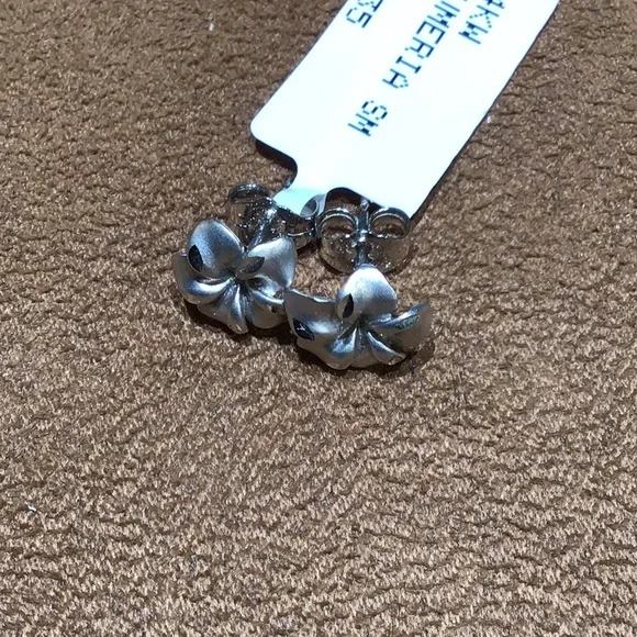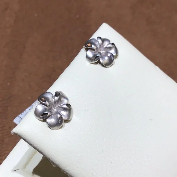 14k Solid White Gold Plumeria Earrings Diamond Cut DetailBrand New Presentation Box Included