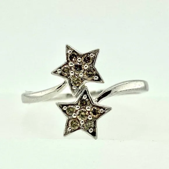Sterling Silver and Cognac Diamond Twin Star Wrap Around Ring