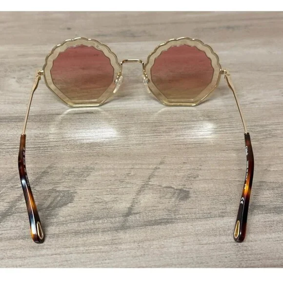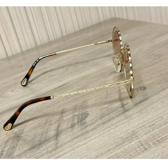 Chloé Gold Brown Geometric Round Sunglasses CH0047S
