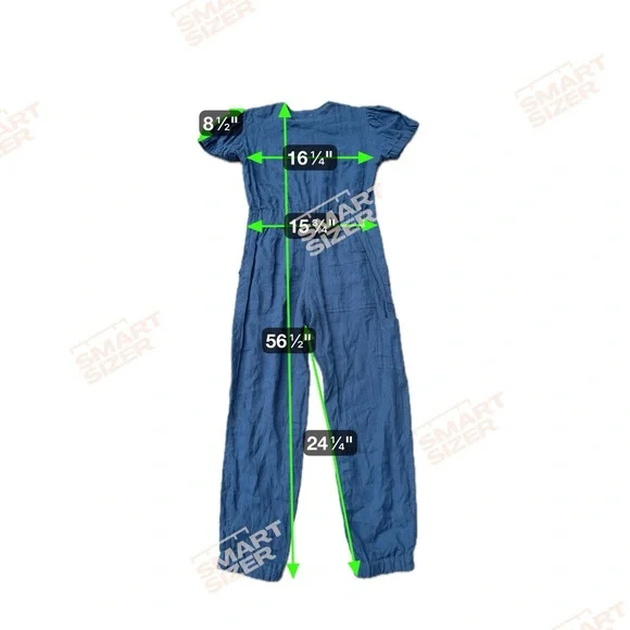 Pietsie 100% Linen Jumpsuit Size Small Good used condition Button front Front/back/side pockets Stylish blue jumpsuit with button-up front. Features short sleeves and elastic...