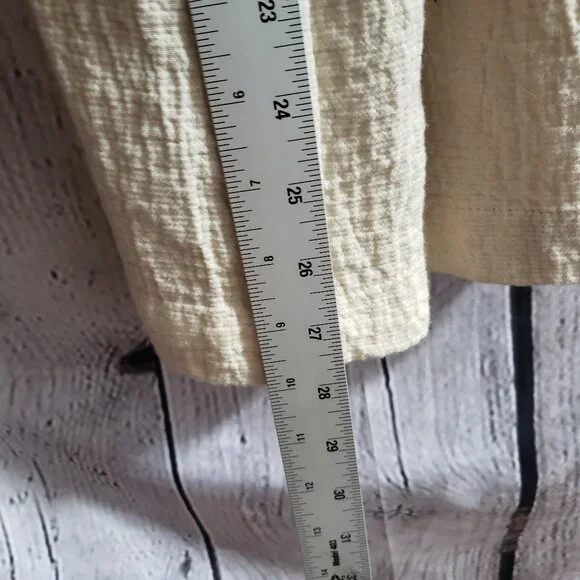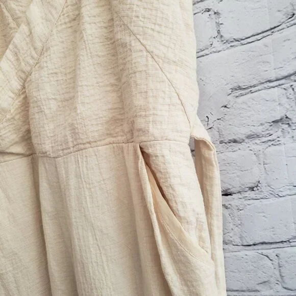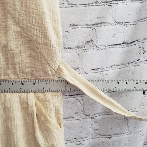 Great condition!Size 14Has PocketsHas a tieLighting was bad when photographed 1st Stock photo represents color best Cream/Ivory ColorGauzy Cotton Fabric