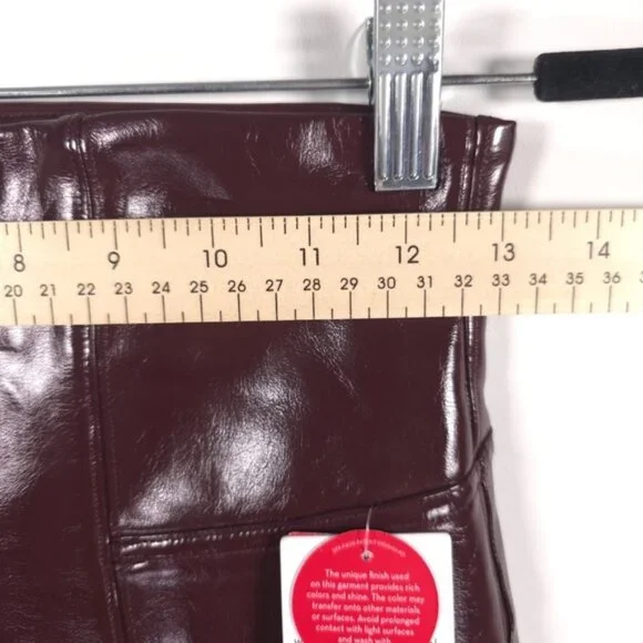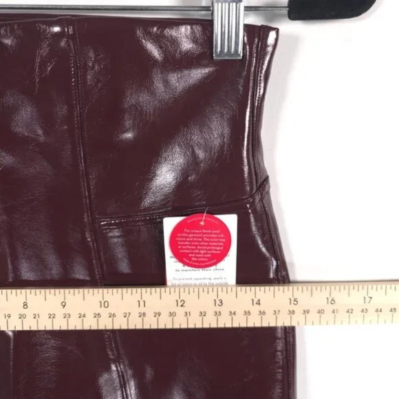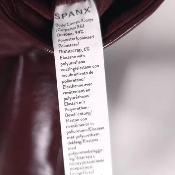100% authentic and brand new SPANX FAUX PATENT LEATHER LEGGINGSColor is a Shiny Liquid Gloss burgundy.These are $128 retail!PRODUCT DESCRIPTIONFaux Leather that flatters. This style features high-shine, smoothing faux patent leather fabric and a hidden contoured waistband. This style was designed with a unique finish that gives them their rich color and shine. Make sure to give them some extra TLC– refer to the Dye Download below!Style No. 20301RDETAILSHigh-shine, faux patent leather fabric shapes and liftsHidden core shaping technologyCenter-seam free for no more camel toeHigh-waisted designSUPER CUTE!!FAST SHIPPINGWELCOME OFFERS & COUNTEROFFERSItem stored in a smoke-free and pet-free environment.Feel free to send me any questions.Please review all photos and zoom in to see the exact condition, details, and measurements.IDIOMAS/Languages: Español / EnglishYou can visit my closet/online store, where you can find a wide variety of recognized and prestigious brands, as well as garments made of CASHMERE, WOOL, LEATHER, LINEN, SILK, among others, in new and pre-owned conditions. Don’t hesitate to take a look, ask if you have any questions, or make an offer.