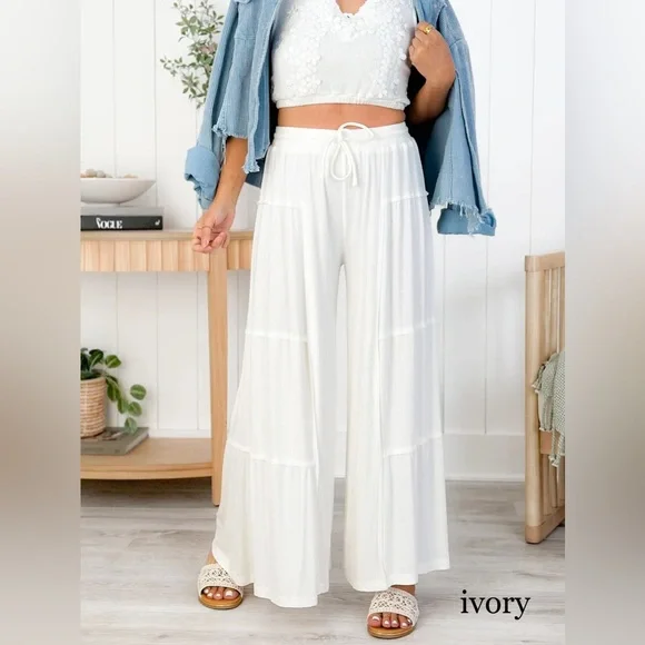Soft POL Ivory White Ribbed Knit Wide Leg Pants | Relaxed Fit | Multiple Colors AvailableStep into effortless comfort and style with the POL Ivory White Ribbed Knit Wide Leg Pants. Crafted from a luxurious soft stretch cotton blend, these pants are perfect for lounging at home or stepping out in chic, casual fashion. Their relaxed fit and wide leg design make them a versatile addition to any wardrobe.Color | Ivory White (also available in a variety of colors)Material | Premium soft stretch cotton blendFit | Relaxed wide leg for all-day comfortIdeal For Loungewear, casual outings, and everyday styleWhether you´re running errands or enjoying a cozy day in, these wide leg pants are your go-to choice for comfort and elegance. Explore our selection of colors and find your perfect match today!S -2-4M- 6-8L- 8-10POL