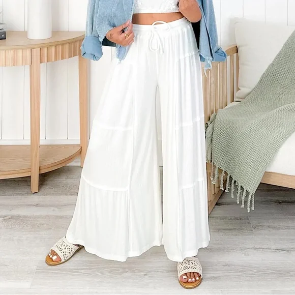 Soft POL Ivory White Ribbed Knit Wide Leg Pants | Relaxed Fit | Multiple Colors AvailableStep into effortless comfort and style with the POL Ivory White Ribbed Knit Wide Leg...