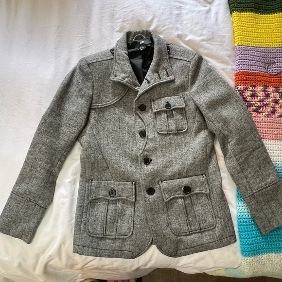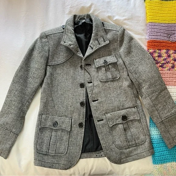 Grey Tweed Sport Jacket Blazer Coat 36R