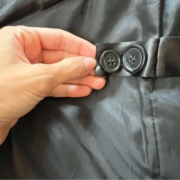 Men´s 36R. In very good shape and clean. It’s a good weight especially for cold days. Interesting stitching on elbow pads and back of collar. Includes spare buttons. One slight mark that´s barely noticeable on the sleeve. Polyester/Wool Blend