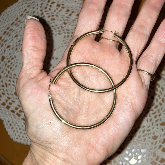 14kt, 3mm, 2" hoop earrings. Purchased from Brownlee Jewelers for $699 + tax.