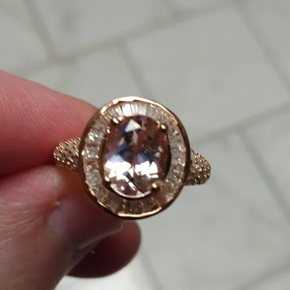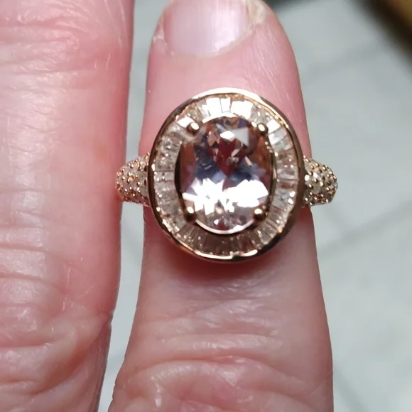 Stamped .925 Morganite and Diamond Ring. 4.65 Grams