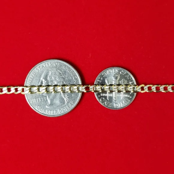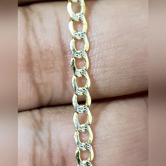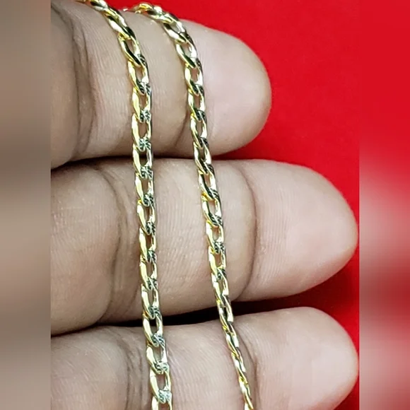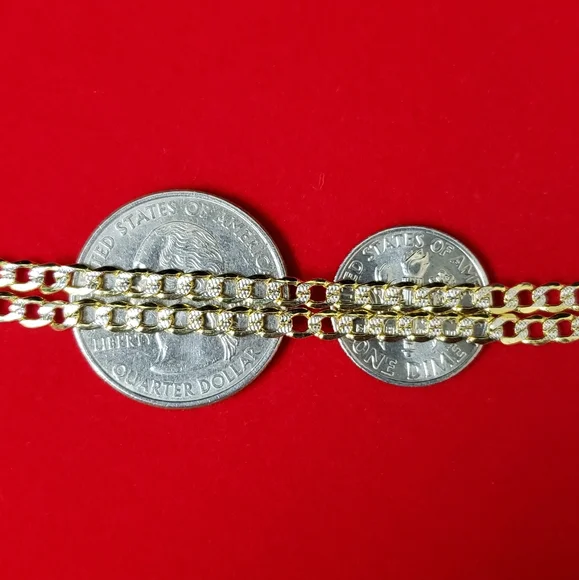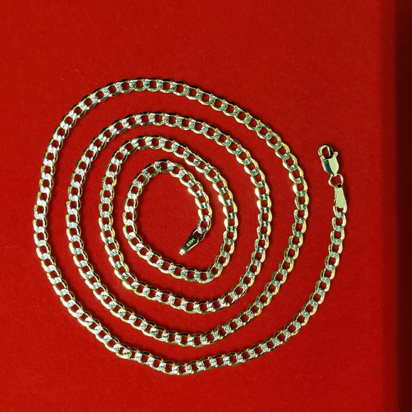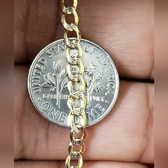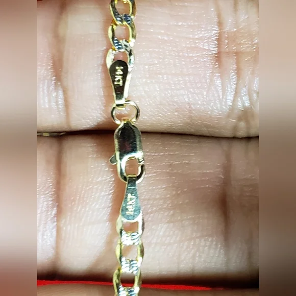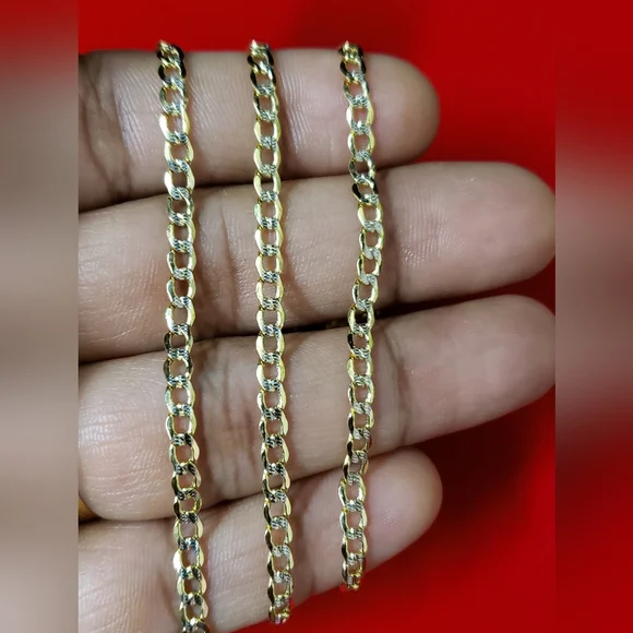 14kt gold Curb diamond cut design chain Weight 4.33gms Width 3.4mmLength 18 inchesPlease check the images to assume the size compared to dime 100 % Authentic 14kt gold chain