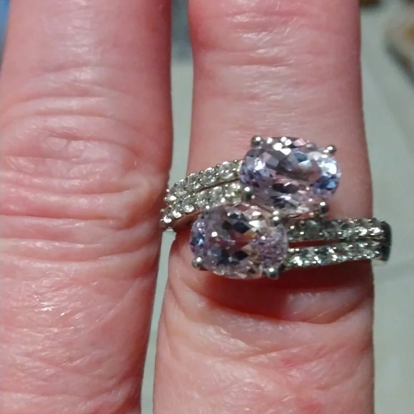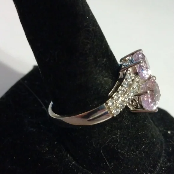 Stamped .925 Kunzite and Diamond Ring. 3.86 Grams