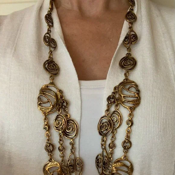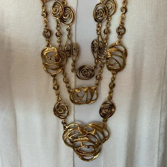 Oscar de la Renta Statement Necklace.• Golden-plated pewter and brass.• Triple Strand• Lobster clasp.Adjustable length.*Priced to sell