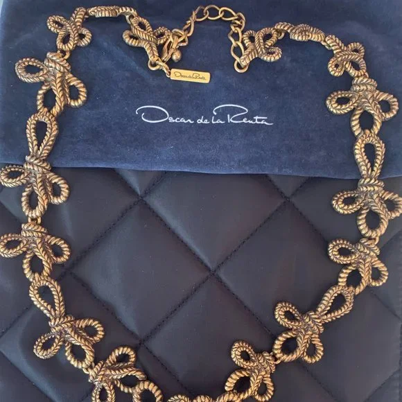 Oscar de la Renta Statement Necklace.• Golden-plated pewter and brass.• Lobster clasp.Adjustable length.*Priced to sell