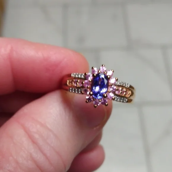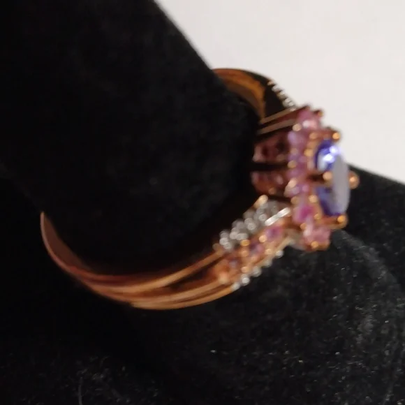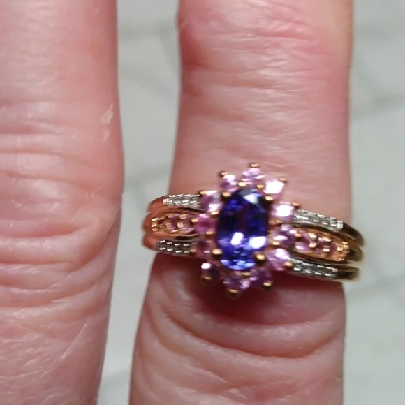 Stamped .925 Tanzanite, Sapphire and Diamond Ring. 4.4 Grams