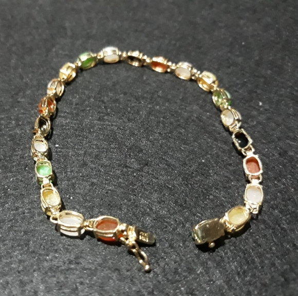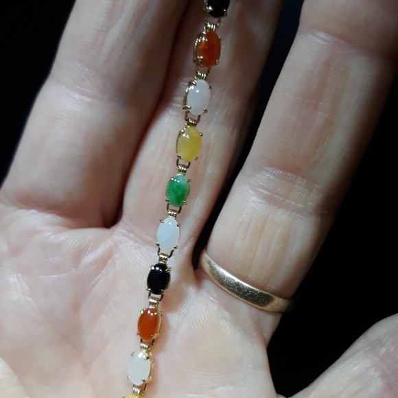 Multi Colored Natural Jade Bracelet 14K Gold