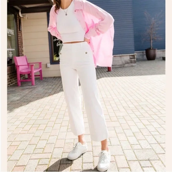 New without tagsSize: Small27" inseam; 19" leg opening, 11 1/2" front rise; 16" back rise Pull-on styleFront slant pockets; back button-flap patch pocketsFour-way-stretch fabricThe Slim is Built In – hidden Gut Check™ shaping targets the tummy