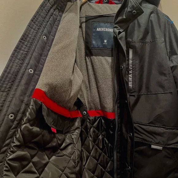 Abercrombie, NY Down Series, Black with Gray & Red Trim Inside. Medium.