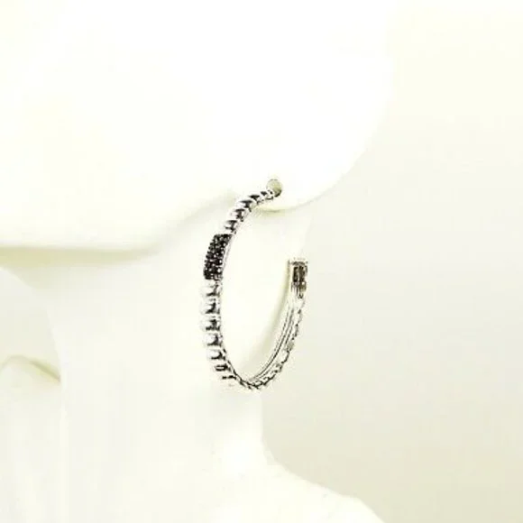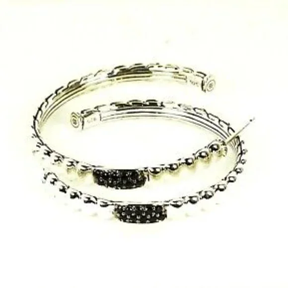 John Hardy´s first partners, the descendants of the goldsmiths to the royal courts of Bali, were the basis of today´s partnership between designers and artisans. Together, they meld time-honored jewelry-making techniques with fresh design to create John Hardy pieces.John Hardy is a jewelry company. Founded by John Hardy in 1975, the company is known for its Asian inspired designs and traditional handmade jewelry techniques. It markets itself as a “sustainable luxury” brand.DETAILS & CARESterling silver Bedeg Lava earrings with pave black sapphire gemstones- Post back closure- Approx. 1.5" length- Imported- Sterling silver, black sapphireComes in black velvet pouch.