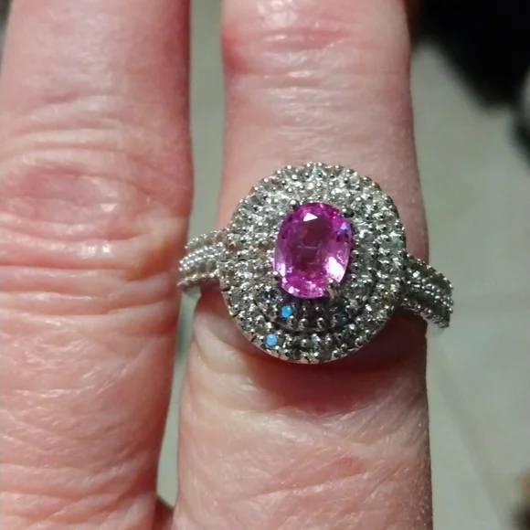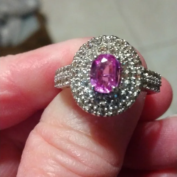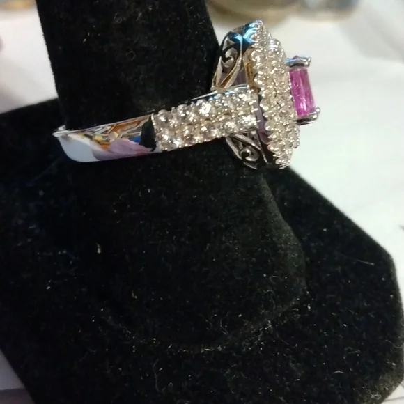 Stamped .925 Kunzite and Diamond Ring5.4 Grams