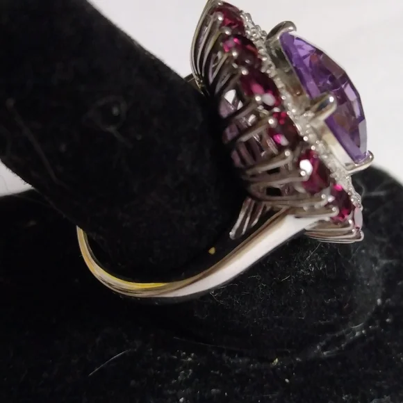 Stamped .925 Kunzite, Orissa Rhodolite Garnet and Zircon Ring8.75 Grams