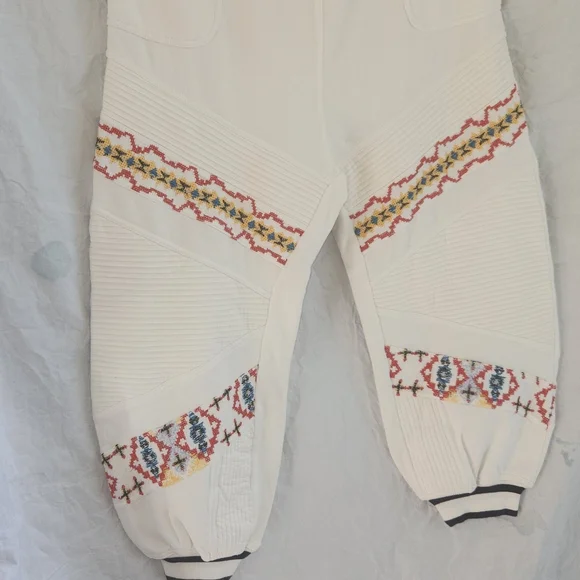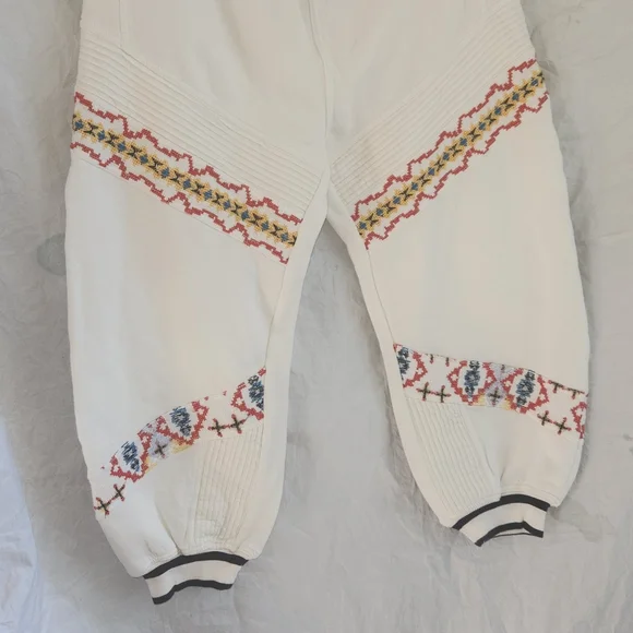 Free People Movement Crystal Sport Joggers Embroidered Ribbed Waist Cuffs Ivory Red Gold BlueNew Without Tags*Size: Mlabel marked though tag to prevent returns 30"Around waist...