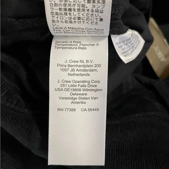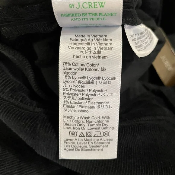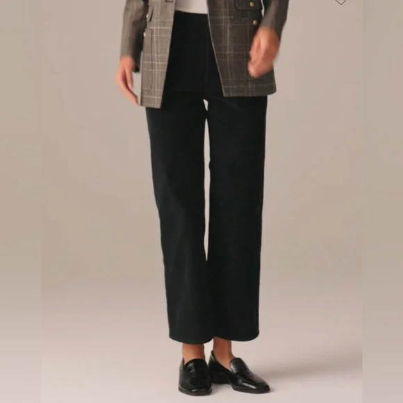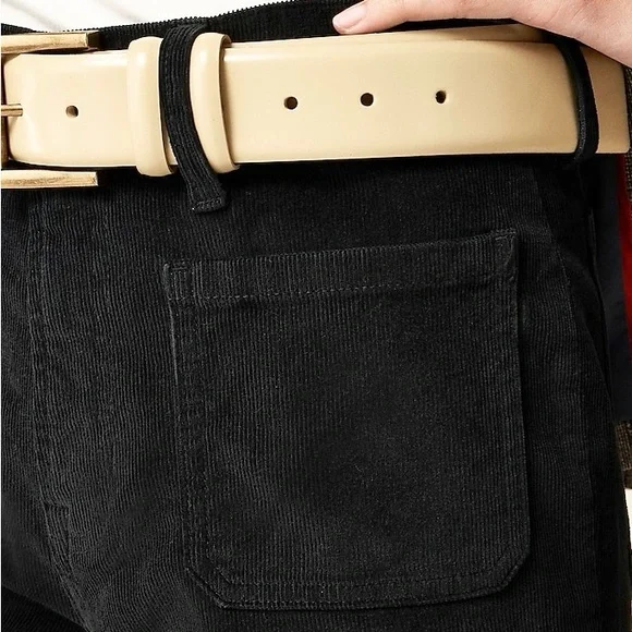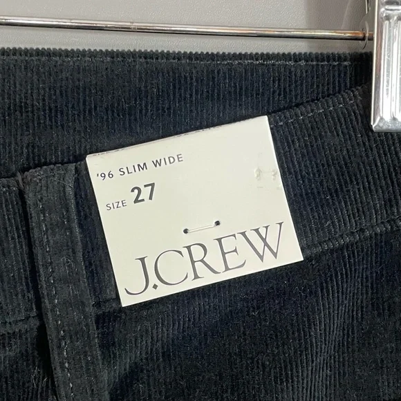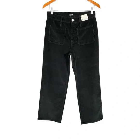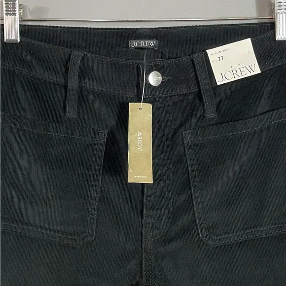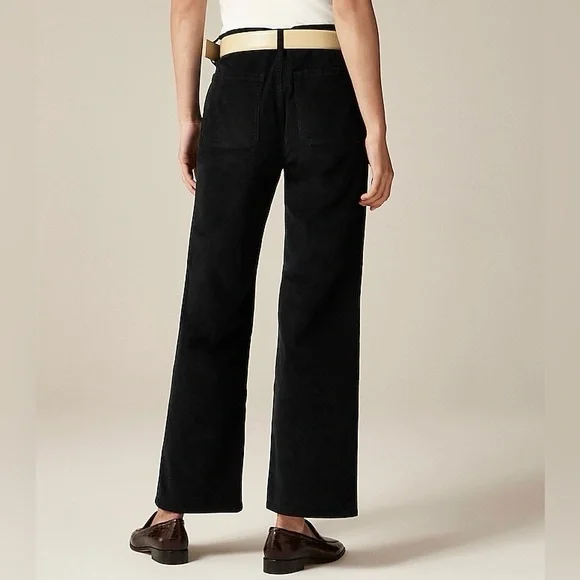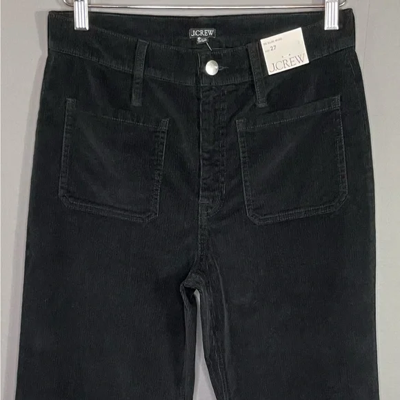 J. Crew Women´s Sailor Slim-Wide Pant in Stretch Corduroy. In black. High rise. Zip fly. Patch pockets. Condition – brand new with tag, mark on interior label to prevent merchant returns.Size – 27Measurements are approximate: *Inseam-27"*Rise-11"*Waist across front-14.5"From smoke free home. I do have pets. Please check measurements for fit.