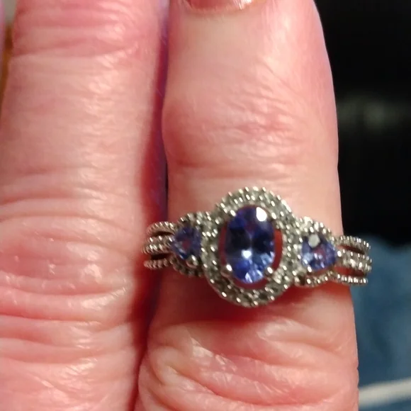 Stamped .925 Tanzanite and Diamond Ring3.5 Grams
