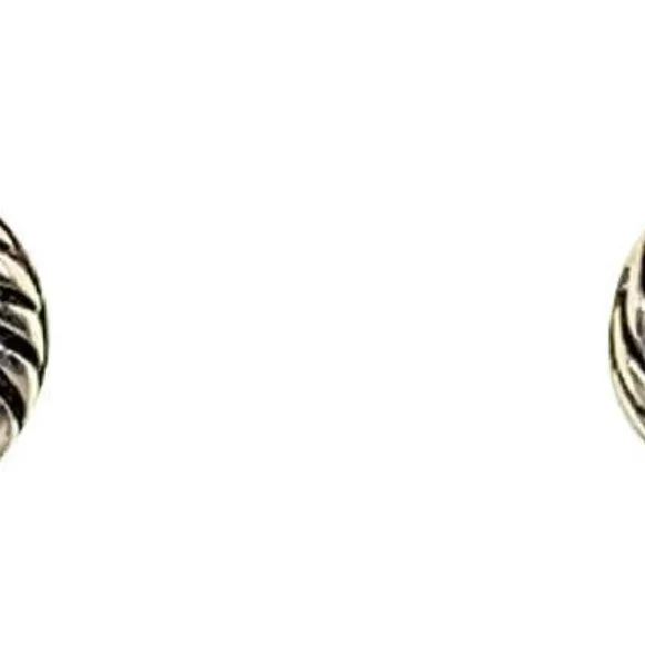 David Yurman Cultured Pearl Earrings in Sterling Silver with 14 kt Gold, 4 mm pearl.Circa, 2000.Measures 1/2" diameter.Earrings are post for pierced ears.Marked, D.Y., 925, 585 for 14 kt yellow gold.