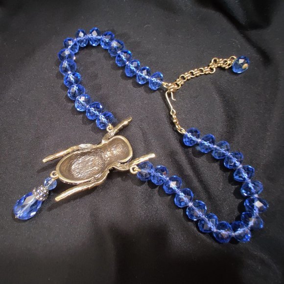 New Heidi Daus Sparkling Scarab Art Deco Style Necklace Blue Pave Rhinestone
