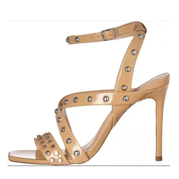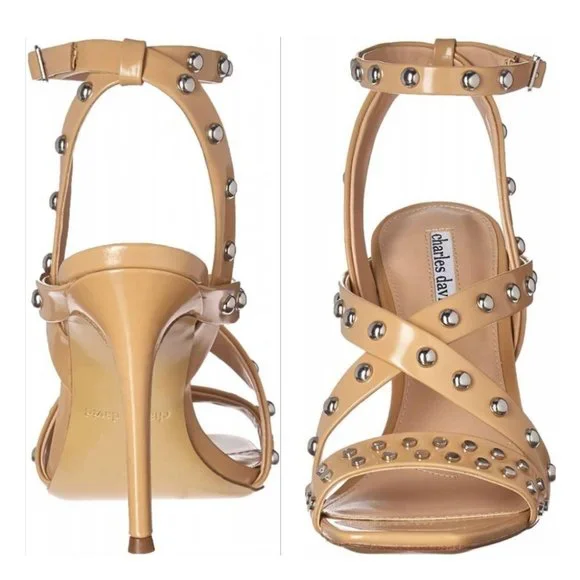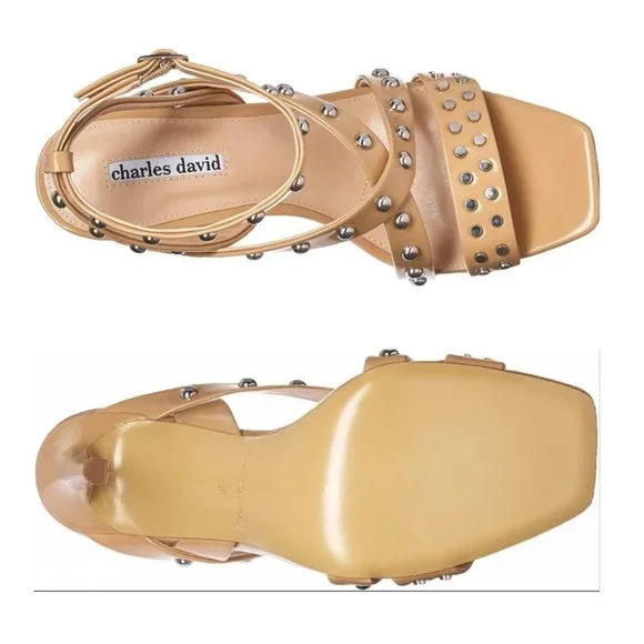 CHARLES DAVID $279 NIB Velocity Strappy Stud Sandals Heels Pump Nude Tan BiscuitStudded Strappy Sandal - great for casual or dress looks!"These shoes are show stoppers -...