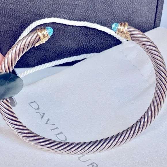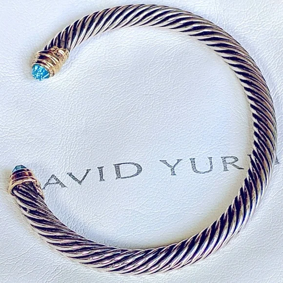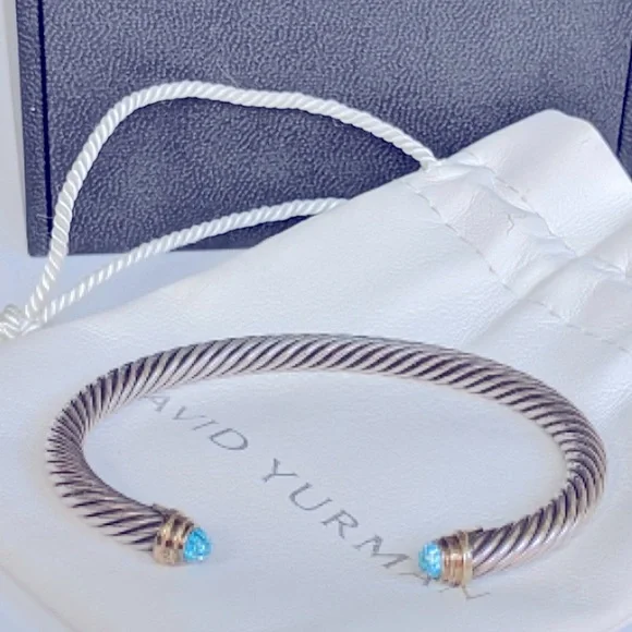 This classic & stunning Yurman bracelet goes with every outfit & is perfect for any occasion!- CABLE COLLECTION- BLUE TOPAZ & 14K GOLD ACCENTs- CABLE WIDTH, 5MM- AUTHENTIC- HALLMARK: c D. YURMAN 925 585*6.5" circumference SIZE: MEDIUMINCLUDES: DY Dustbag & Polishing Cloth*PICS SHOW THE ACTUAL ITEM YOU WILL RECEIVE AND ARE THE PROPERTY OF LONDON LILU LLC.