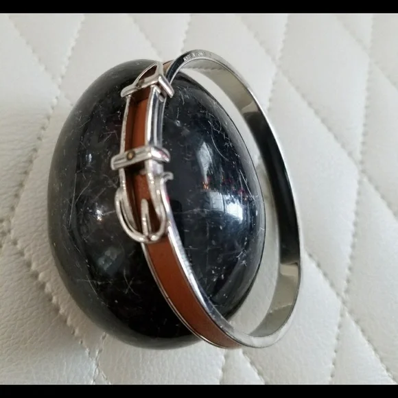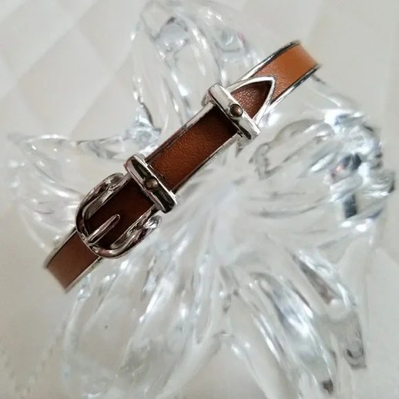 Hermes silver with brown leather belt bracelet