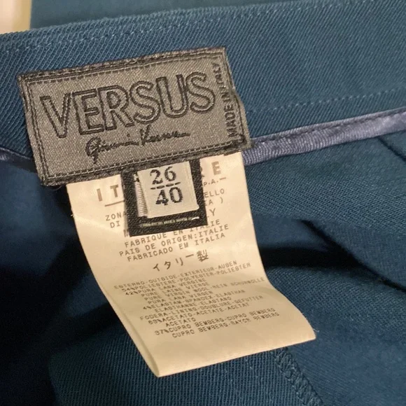 Versus Gianni Versace Women’s Classic Full length Trousers Pants in Dark Teal.Polyester and Pure Virgin Wool.High Rise High Waist.In very good condition as shown in photos.Measures 42 inches in total length, 32.5 inch inseam, 11 inch rise and 26 inch waist.Size Women’s 26.