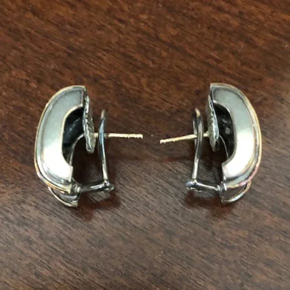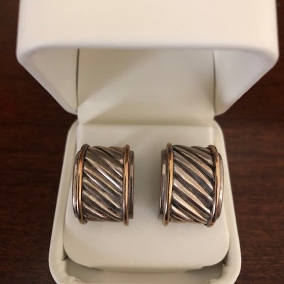 David Yurman cable cigar band pattern in sterling silver and 14K gold. In nearly new condition. Lovely and classic earrings.