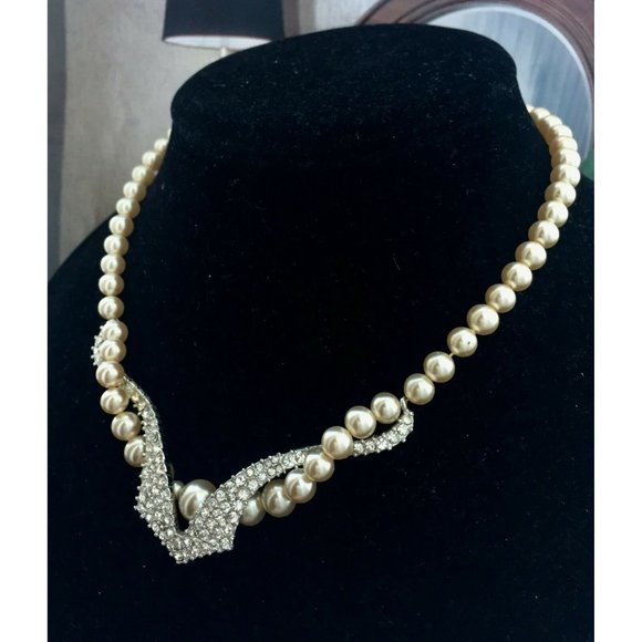 STRIKING! 1950s Marvella Victorian Champagne Pearl Necklace Art Deco 50s silver Tone vintage Crystal rhinestone bridal wedding fashion Couture designer vintage RARE!Excellent like...