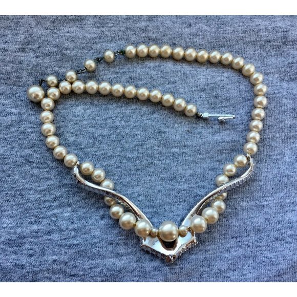 Vtg 50s Marvella Pearl Necklace Crystal art deco