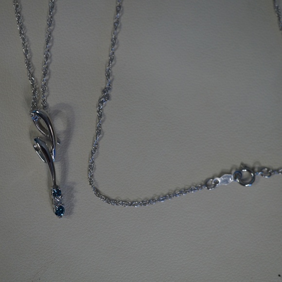 NWT 14kw gold genuine blue and white round diamond pendant with 18 inch ropa chain.