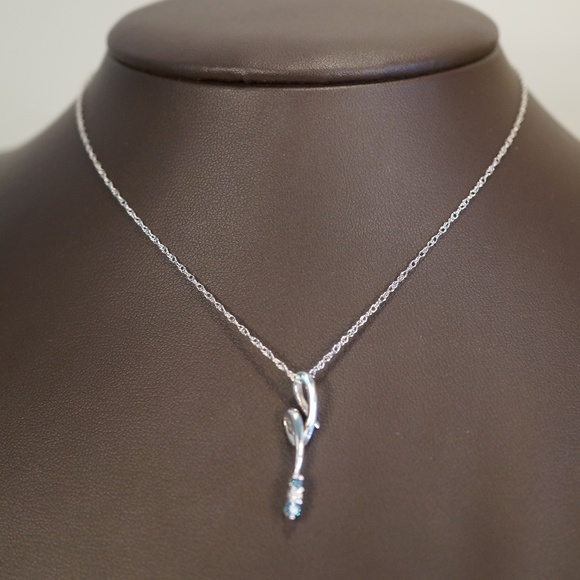 14KW Gold Genuine Blue+White Dia. Pendant W/Chain