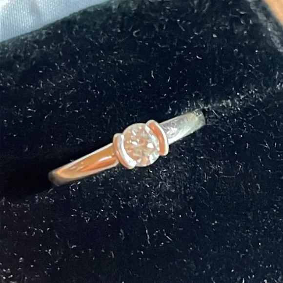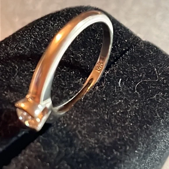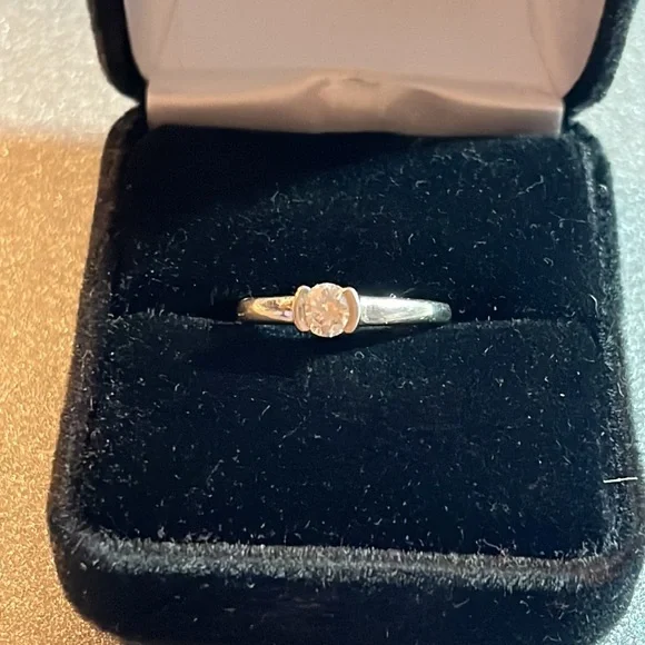 Beautiful classic beauty. 1/4 Ct set in 14 kit white gold. Can be sized. Genuine diamond. Super cute and affordable for a first diamond ❤️. It’s a 6 or 7 in size.