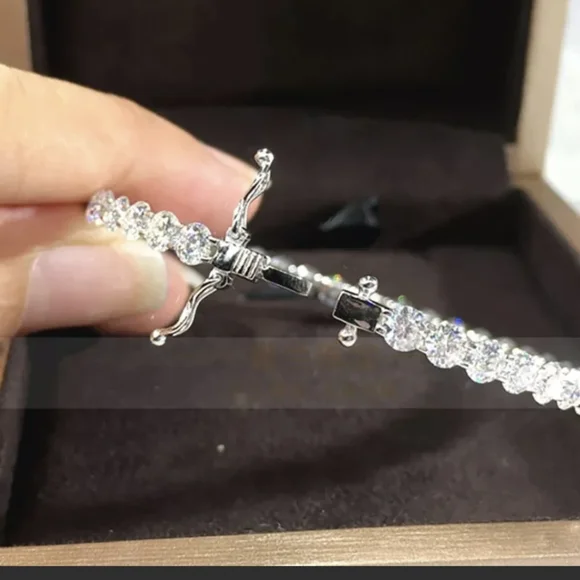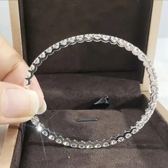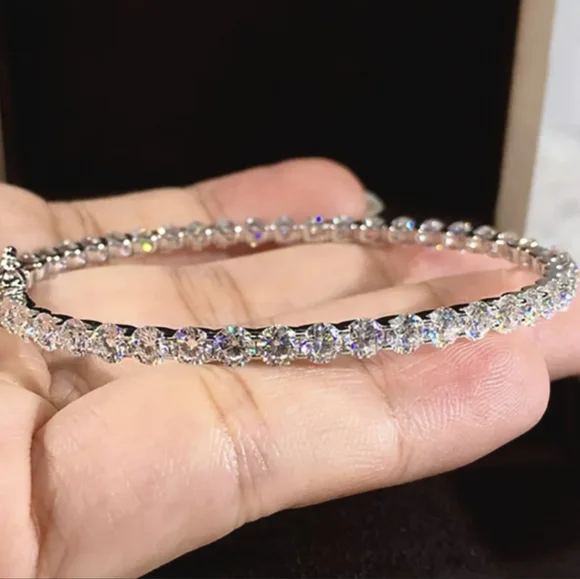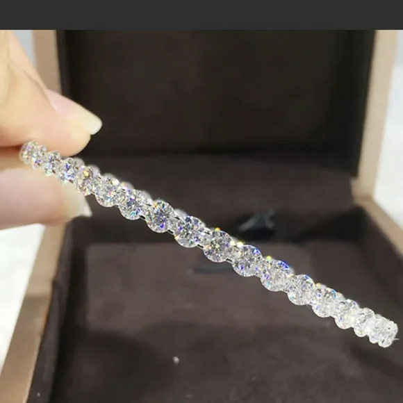 VVS1 D FANCY MOISSANITE 10 CARATS IN THIS BEAUTIFUL STERLING BANGLE UNIQUE AND BEAUTIFUL THIS SPARKLER NEVER STOPS.