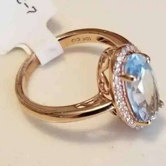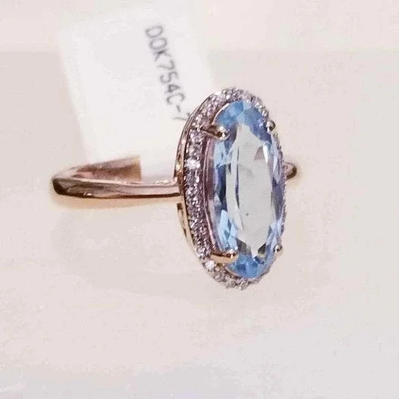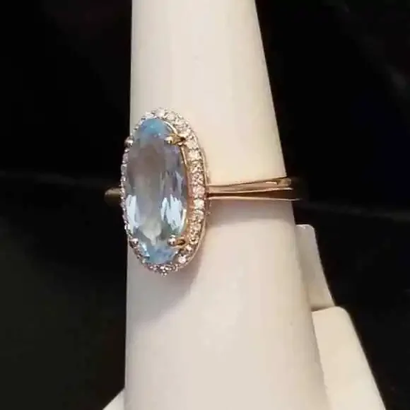 CROSS POSTEDPlease check out my other beautiful jewelry and follow or favorite me to receive notifications when I list new items. Thanks for visiting!Blue Topaz Diamond Halo Rose Gold Marquise Ring is size 7. Blue topaz and diamonds are genuine and Earth mined. Setting is solid 10k rose gold. Weight is 4.2 grams. Stamped 10k. measures approximately5/8" tall by 3/8" wide. Comes with a ring box. This elegant ring will get tons on compliments!Blue Topaz Diamond Halo Rose Gold Marquise Ring 19000 BAN D SET WHITE PRONG LONG KNUCKLE FINE