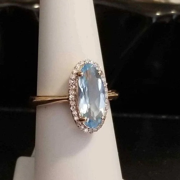 CROSS POSTEDPlease check out my other beautiful jewelry and follow or favorite me to receive notifications when I list new items. Thanks for visiting!Blue Topaz Diamond Halo Rose...
