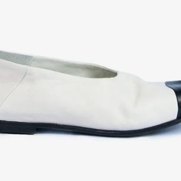 Modern woman white and black toe Slip on shoe in soft Italian leatherItem Code: 2Dali03Color: White & BlackMoccasin Slip on shoe in white leather and black toeLining butter soft...