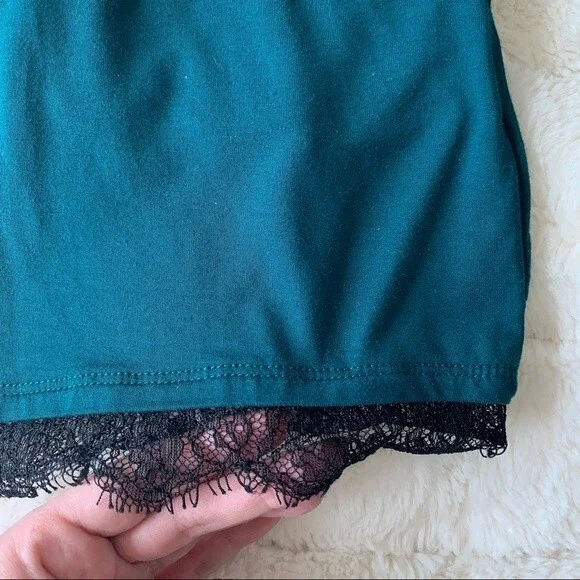 Lovers + Friends Teal Romper Black Lace Trim XS